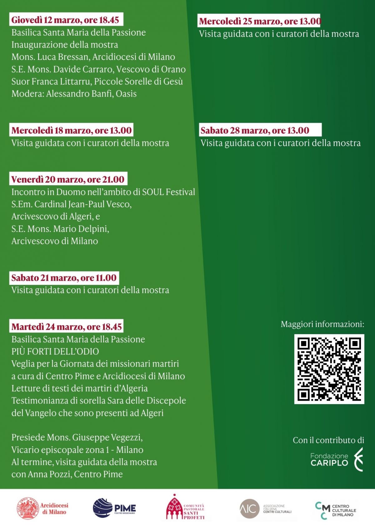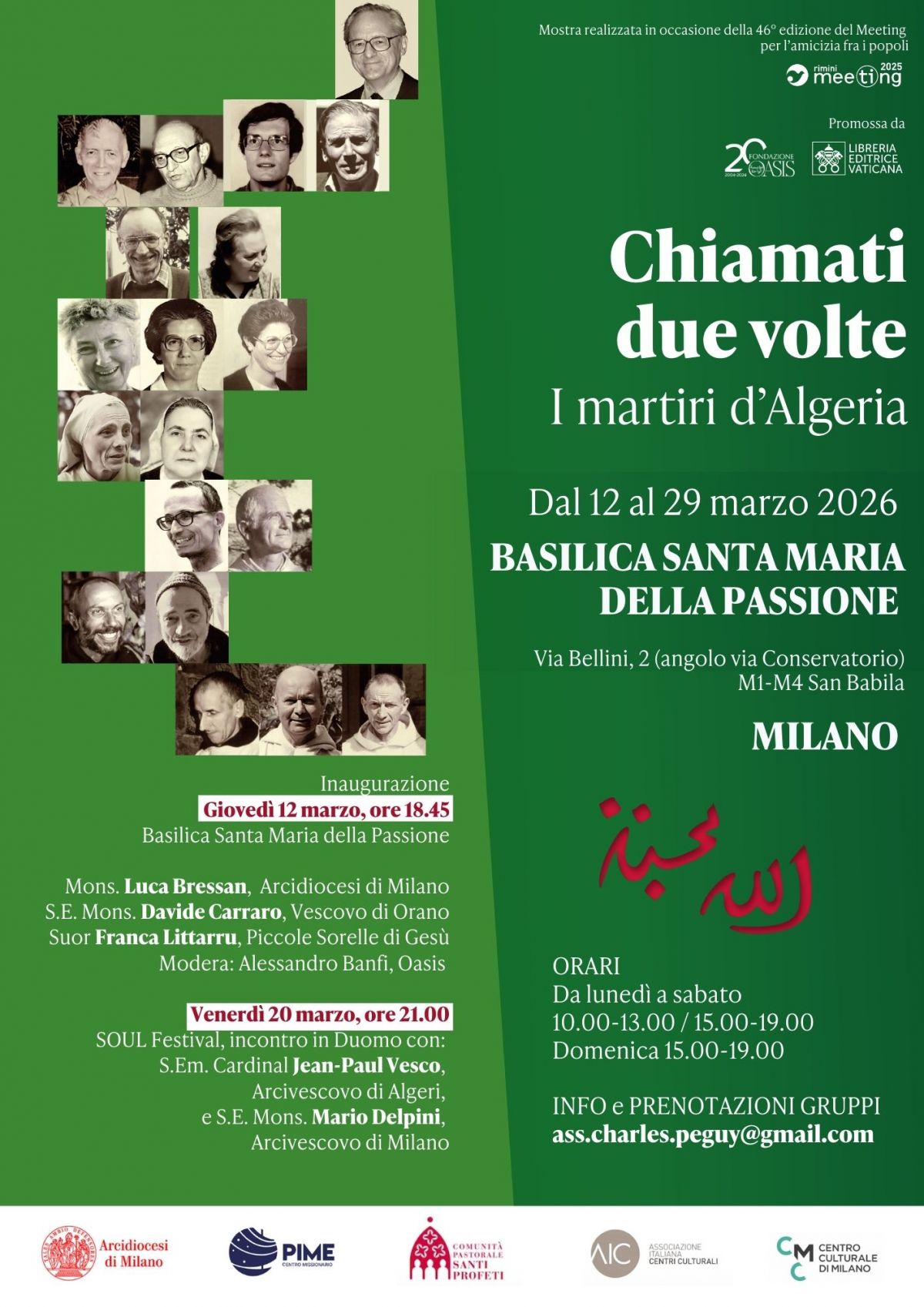 La mostra Chiamati due volte. I martiri d'Algeria, promossa dalla Fondazione Oasis e Libreria Editrice Vaticana, arriva a Milano dal 12 al 29 marzo 2026 presso la Basilica di Santa Maria della Passione.